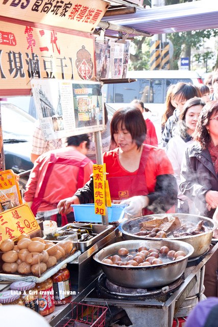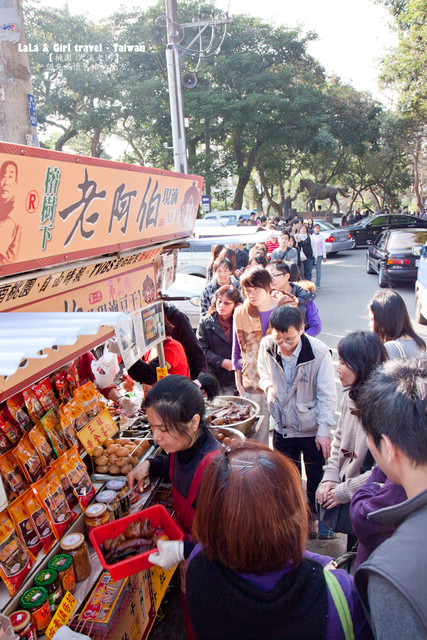 首先登場的是應該很有名氣的老阿伯現滷豆干..排了一拖拉庫的人龍